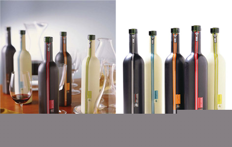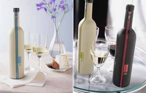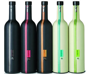 酒瓶被套上了一件精致的拉链外衣,显得格外典雅、性感,酒瓶的线条简洁、现代,不愧是Made in Italy.