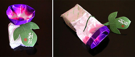 柿子形包装:它的结构就是被n次节定的形,如同叶子或说花瓣形,左图为柿子形包装,右图是鸢尾花造型。来自京都清闲院的果品包装。