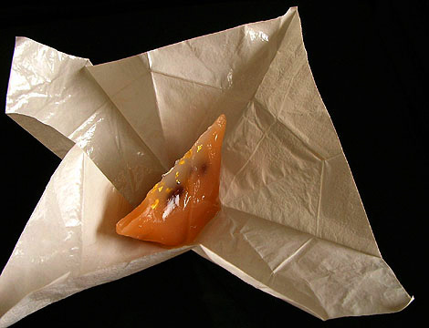 日本的包装设计向我们展示了“复杂的简单”之极致:图为京都京果子处鼓月出品的拥有完美细节,折纸形式的Mizu-Yokan糖果包装。