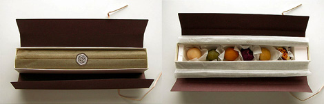 精巧的双层式包装:由金泽的糖果公司森八出品的栗子馅小糕点。