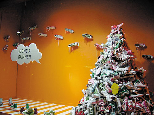 图2:这个作品给观众充分的空间去想象一对年轻夫妇全新的家庭生活,甜蜜的、充满希望的、或者偶尔闹些小别扭……这样的叙述让不同层面的观众都会有所感慨,可见从消费本质上设计的关怀比起简单的商品陈列更容易打动人。 一、再看“创意”之于“设计” 和设计师谈创意,很多人不免会笑,反问道:没有创意谈何设计?但如果放在产业环境中再问:设计中怎样的创意可以更有效转化成财富?前提是既要有“创意”,又可以被市场认可。年轻设计师们就会纷纷举手表示共鸣,因为他们困惑:当我们有激情创意的时候客户总是不满意;当慢慢习惯了妥协也实现了市场价值的时候,面对作品,他们已不再真正演绎“创意”了。浏览当今设计的一些优秀作品,关于“创意”会有一点启发。 创意可以是一种生动的叙述 创意对设计而言,不仅要创造审美、功能上的认同,还可以有内容上的耐人寻味。创意的内容如果可以超越以往认为的一般审美与功能要求,而通过生动的叙述表达,那么从形式到内容就可以牢牢抓住受众的两次创作的心理空间,达到受众与创意的深层次的交流与共鸣,完成了某个设计需要完成的信息传达目的,实现了面对市场的最终目标。要完成这样的过程,创意要生动感人,借鉴一些故事的叙述经验不妨是一个好的尝试。每个人都有听故事的经历,从孩童时代听大人讲故事到成年后看影视作品,我们一直被各种形式和内容的故事包围,而这些故事往往可以让我们停留、思考或感怀。选择一个故事主题,通过设计的语言,创造这种感怀,同样可以有效地实现设计在商业上的目的。 图1:这是伦敦著名的Selfridges百货公司的橱窗设计。通常意义的橱窗设计会将商品的陈列和商业的活动营销摆在设计要考虑传达的信息的首位。有别于通常意义的橱窗设计,selfridges的橱窗设计从不同的叙事方式出发,生动地把商店的营销文化、到这个商店可能体会到的物质到精神的消费过程贴切地表现出来,这也就间接地构建了一个引人入胜的消费语境,从根本上创造和吸引了消费者的消费需求。 图2:同样是这个系列的设计,这个橱窗就更加温馨:一对年轻的夫妇身处自家后院的生活场景。家庭生活的美好都隐藏在日常生活中,寻找生活中锅碗瓢盆的温馨只要在selfridges消费就可以实现,selfridges关心你生活的方方面面。 |