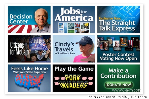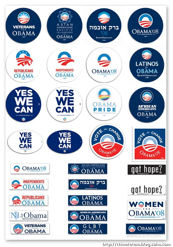 希拉里和麦凯恩都选择以不变应万变的VI,以期给选民留下固定印象,奥巴马则反其道而行之。艾克瑟洛德说:“在WEB2.0 时代,我们要应对的是个性化的VI 需求。”出席各种不同场合都能随机应变,这就是奥巴马所谓“流动的VI”,即便是在MTV 颁奖礼或纽约第五大道上的Saks 百货公司,奥巴马的VI 都足够吸引眼球;而回到一本正经的市政厅会议,奥巴马的VI 又能从容“变身”,不至于“失体统”。Sender LLC 的主设计师索尔·森德尔(Sol Sender)说:&ld[FS:PAGE]quo;我们原本担心,变来变去会不会辨识度降低,事实证明,我们做得还不错。”