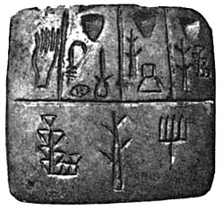图2(右) 两河流域的苏美尔人在泥板上书写的楔形文字是已知的世界上最古老的文字