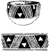 (图1) 仰韶文化半坡型彩陶图纹样 (图2) 我国最早的刘家针铺的石兔商标 (图3) 中国古代太极八卦图