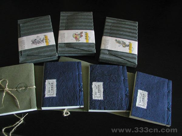 一[FS:PAGE]套五位画家藏书票的作品集,设计时编集大量有关名家对读书的只言片语,衬托并提升了本书主题的内涵,增加了书的信息量和附加值。书的形态采用便宜的宣纸和瓦楞纸麻绳组合套装,沿袭传统但不照搬,营造书籍艺术的古雅文化氛围。