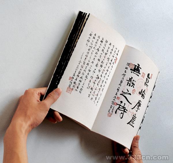 设计者以方便阅读为目的,运用书函软和硬的不同材质,创造了一种视触感具有强烈对比的书籍形态。作者并非为物质而设计,而是以准确的物质把握达到内涵的完美体现。 书之五感为阅[FS:PAGE]读带来了愉悦。”法本法无法,无法法亦法。”吴勇善于以独到的创想力塑造多种形态的书籍设计,给人以全新的感受。