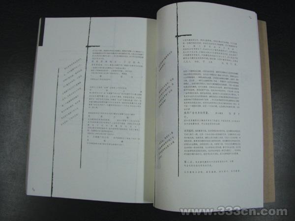 | (三)从装帧到书籍设计(book design) 装帧与书籍设计的本质区别是什么?装帧以二元化思维和绘画式的表现方式完成书的封面和版式,而书籍设计是一种“构造学”,是设计家对主体感性的萌生、悟性的理解、知性的整理、周密的计算,精心的策划,节奏的把握、工艺的运筹等等一系列有条理、有秩序地整体构建设计者心中的“构筑物”,其不仅仅是一本读物,它能与周围的环境形成一种和谐的理想空间。一本书的设计虽受制于内容主题,但决非是狭隘的文字解说或简单的外包装。设计者应从书中挖掘深层涵义,觅寻主体旋律,铺垫节奏起伏,在时间艺术中体现空间感受;运用理性化有序的规则意识捕捉住表达全书内涵的各类要素:到位的书籍形态、严谨的文字排列、准确的图像选择、有时间感受的余白、有规矩的构成格式、有动感的视觉旋律、到位的色彩配置、个性化的纸材运用、毫厘不差的印刷工艺……这近乎是一出有声有色的有生命的戏剧,是在构筑感动读者的桥梁。 书籍设计是一种立体的思考行为。那种以绘画式的封面,以永远不变的正文版面为基点的装帧只是一个外包装。书籍设计应是包含着封面,环衬、扉页、序言、目次、正文、各级文字、图像、饰纹、空白、线条、标记、页码 等等内在组织体从“皮肤”到“血肉”的三次元的有条理的再现,陈旧的设计观念割裂了外表和内在的呼吸关系。以经济成本核算或印制条件所限为由,遮盖设计意识滞后与设计语言贫乏的现状,导致设计师们总以画家的思维方式进行表面化的装饰表演,也包括缺乏实质性设计概念探讨而满足于孤芳自赏式的花哨的文艺批评而使理论研究流于形式化。