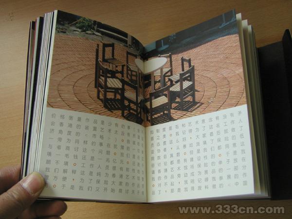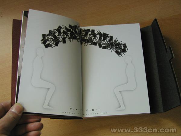设计者以作品“椅子”贯穿于整本作品集。将图像与文字融入统一的设计统筹之中,即使纵有千种万种的元素,对设计章法的准确掌控也会引导读者进入意境,读者感受到一种气的流动。”得法不如得意,得意不如得气,“好的书籍设计的高妙之处正在于此。这是一本设计信息量丰富、妙趣横生的书籍。
