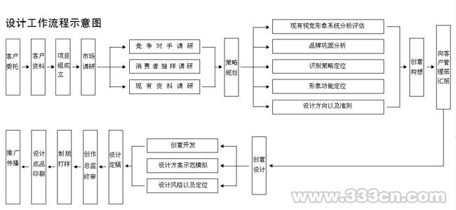 我这里把设计分为两种情况说明,一种情况是设计企业与客户之间工作流程,即根据工作程序所制定的“设计计划”,以利按质按时地完成客户委任的工作,如图所示。下面要阐述的“设计计划”,是指设计师接受设计项目后可细化的工作,因此,设计是一项由远至近、由浅入深、有步骤、有主张的设计计划,如画册、海报、包装、VI等。在工作中,我常遇到一些设计师特别是一些长期在小型设计企业从事这方面工作的人,没有受过严格的培训,接手设计项目后便上电脑操作,对自己的工作没有计划程序,连最基本的用笔用纸打草稿的工序都省掉了,又没有明确主张,甚至连用什么材料、安排多少P数都不去思考。我记得有一位刚进我公司上班的设计师,我安排他设计一个小型画册,结果他连封面、封底、封二、封三在内设计了22P,把菲林制好后,到印刷厂才发现22P的画册无法印刷。因为设计稿大都是跨版,还有左右之分的落格标题,无法让出封二、封三的空版,要改过来,必须重新设计制版,由于没有事先的计划,又不懂得拼版的原理,犯了一个最低级的错误导致了时间和经济的大损失,这样的事情 在初学者来说是常发生的。对于设计,如何计划,有何主张,这是设计师把握设计作品的关键问题。设计创意是设计师大脑的主观反映,设计师对设计主题的把握、创意构思,如何处理图片、采用什么字体,排版形式,采用何种纸张、开度,多少P数适合,这些都是在设计创意的计划之中。有一次,一个客户委任我们的设计一本画册,这本画册原来在一家公司设计过,由于耽误了时间,因此要求我们在一周内完成,我不敢接受,因为这个时间是不可能完成的,但他提出的理由让人啼笑,他说,人家公司设计过,他们已支付了一部分钱,他们认为有一部分设计还可以,只需要我们把另一部分完成好。我只得向他耐心解释“设计计划”的道理,如设计主张、创意风格、设计形式、版式要求、色彩、元素都需要重新规划,否则在这种情况下完成的作品会比前家设计更糟,说了半天,他才终明白这个道理。隔行如隔山,隔山不隔道,设计师说服客户也是一种能力[FS:PAGE],只要有说服的理由,最固执的客户也能开窍。