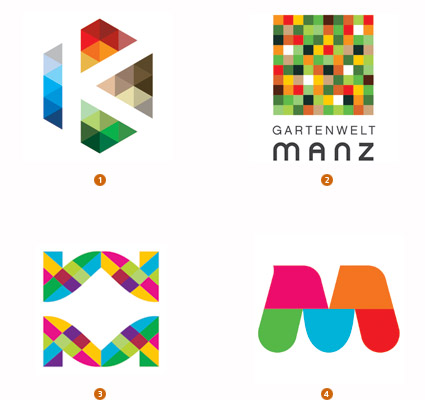 马赛克顾名思义就可以理解了。用色块(广义为各种形状的色块,不一定是方块)瓶贴的方法设计标志,带给你缤纷的色彩外,还能为设计带来好心情。有的马赛克还是一副实物画像素后的玩意儿(很多名画都遭秧了),是让看者远观让其猜猜是啥东西的游戏。蒙德里安的绘画把此类手段升华到最高境界,世界万物最后都可以归结到几个小色块中,很有哲学的意味。