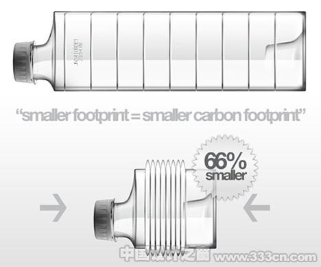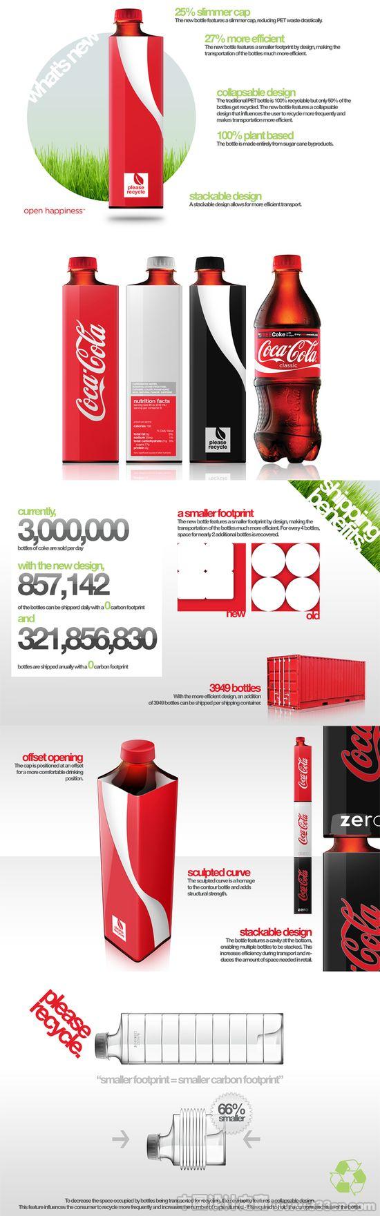 方可乐瓶,节省运输空间,瓶盖部分易于多瓶叠加,喝完后可压缩,进一步节省空间,Andrew Kim 设计: