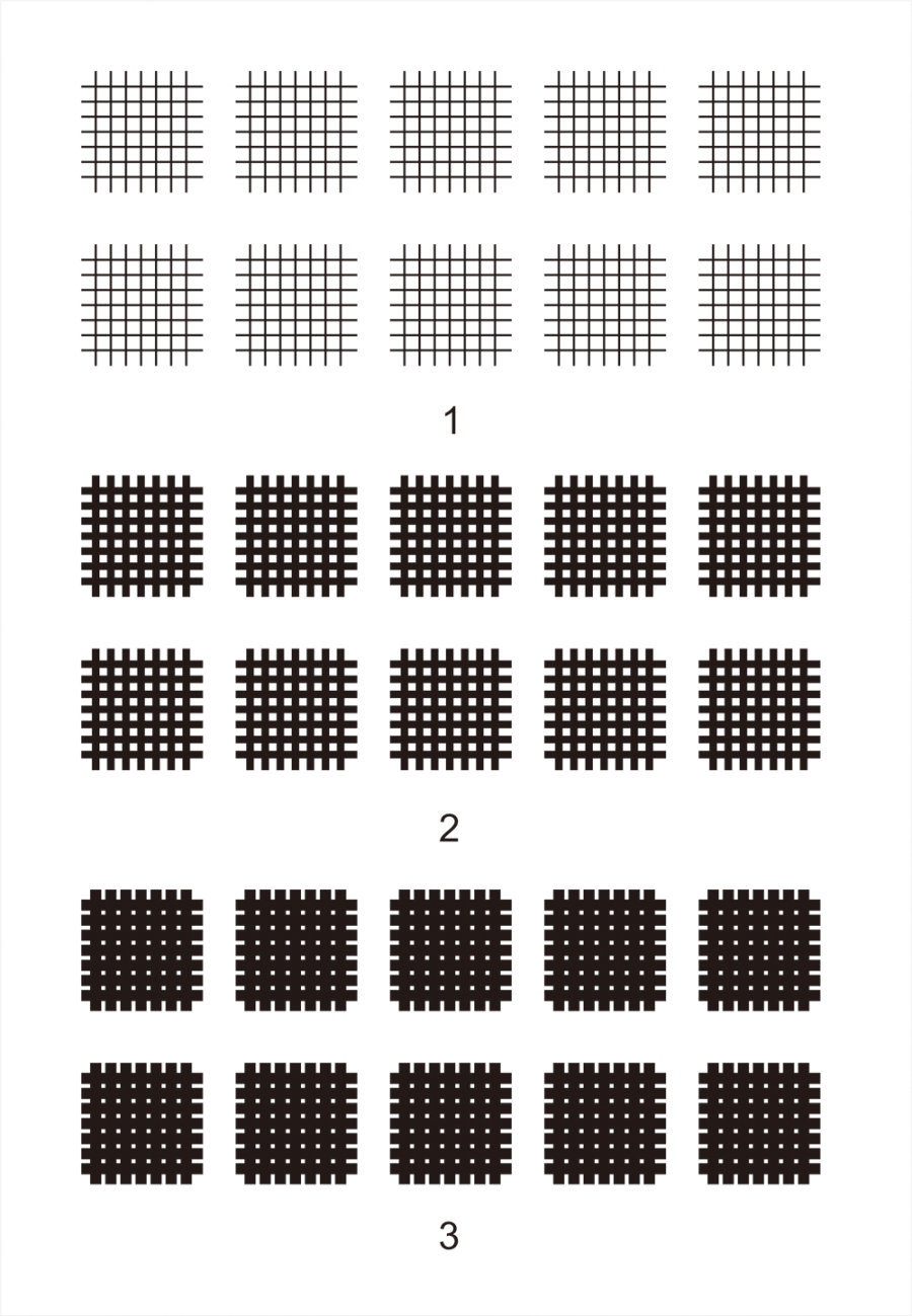 在设计从上图我们看出,图1,它是线。图2白点很明显。图3是一块黑的东西。所以中磅数要设计的就是我们感觉到的这些白点。