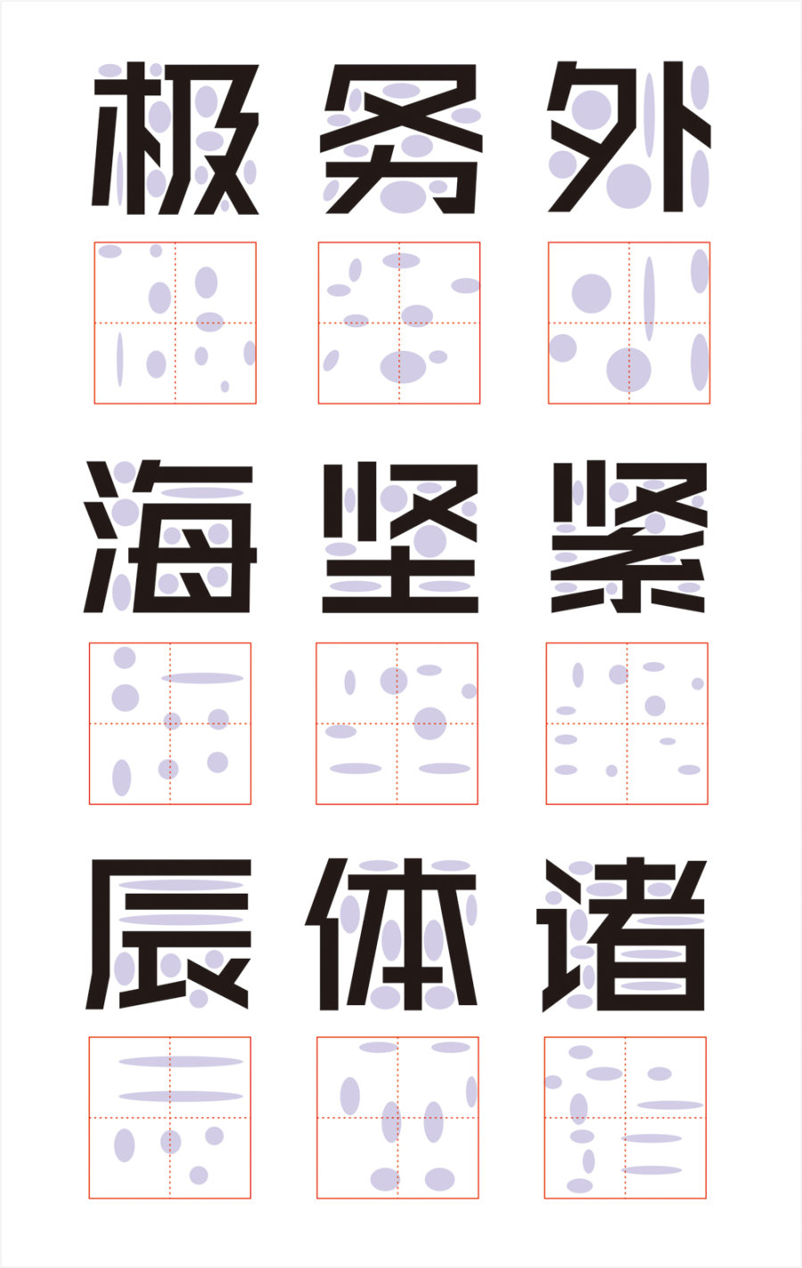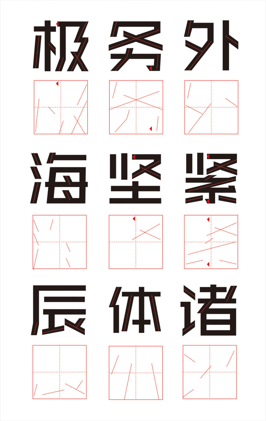 我把汉字当成一个不规则复杂的几何图型,尽管我不能再每一个字上面套一个公式。我也觉得要尽可能多的不矛盾的、不乱来的、有序可循的等东西放进去。