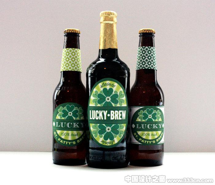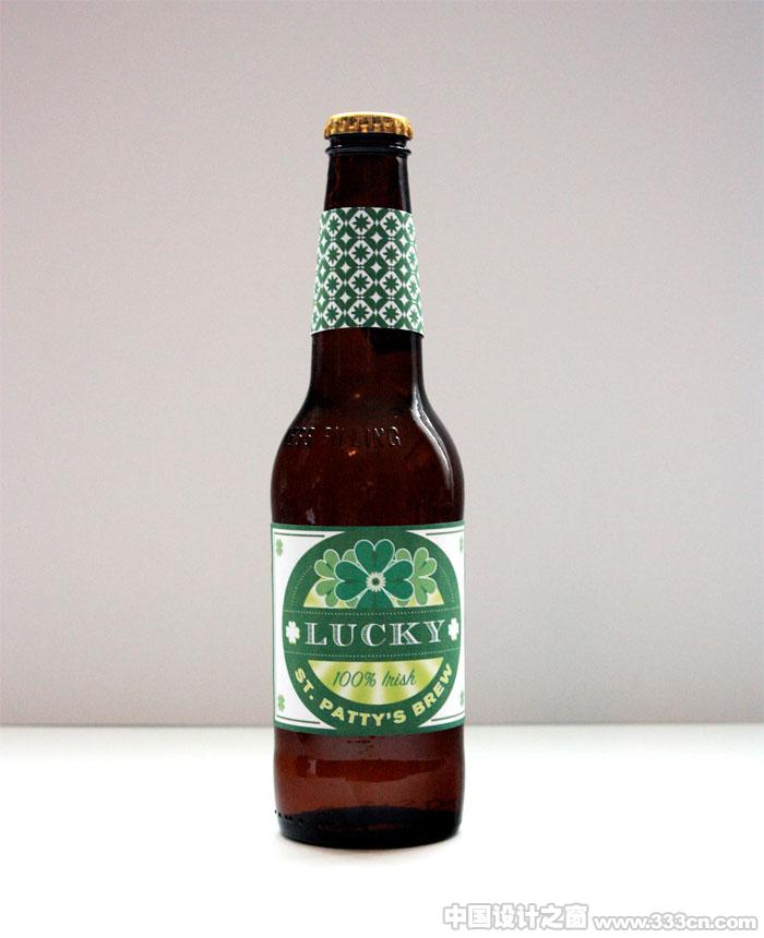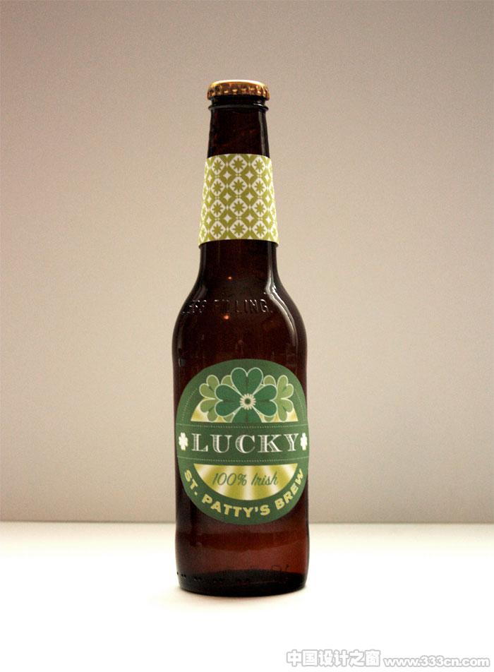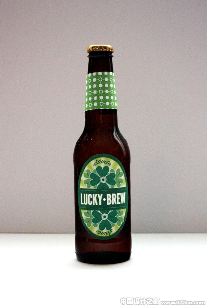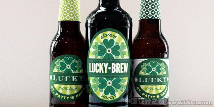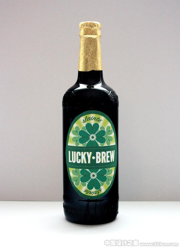 设计师Rachel Wiles at 为自己喜爱的啤酒:Lucky·Brew设计的瓶装帖样式。