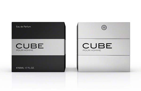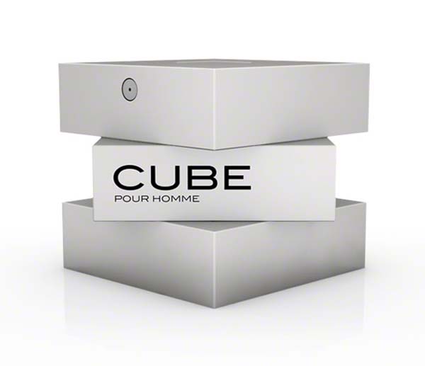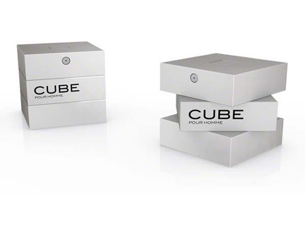“Designer Mike Flache has created a new flacon. Inspired by the name itself, the packaging design focuses on elegant simplicity. The minimalist form is combined with functionality. The Cube has no cap that could fall off. Just twist the object to open/close it. The sprayer button is on the top side of the flacon. The result is an angular and masculine expression–a product that has a character all of its own.”