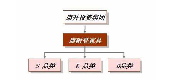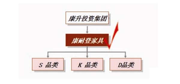 这样,“康生投资集团”退隐幕后,主推“康耐登家具”为企业品牌形象,其下的一系列产品全部在终端体现,形成S、K、D三个产品系列。
