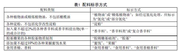 4.1.3.2下列食品配料,可以选择按表1的方式标示。