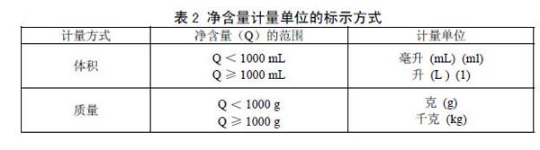 4.1.5.3净含量的计量单位应按表 2标示。