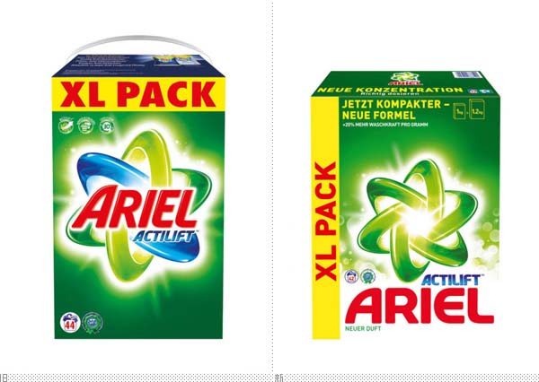 碧浪(Ariel)是宝洁公司(P&G)旗下的一个知名的洗涤用品的品牌,主要产品为洗衣粉或洗衣液。去年年中,碧浪已经在国外换上了新的Logo和包装。碧浪的新Logo仍然以标志性的原子(Atom)符号为主要元素,不过颜色从之前的蓝绿搭配变成了纯绿色,中间的“Ariel”字样移到了Logo底部并重新设计了字体。