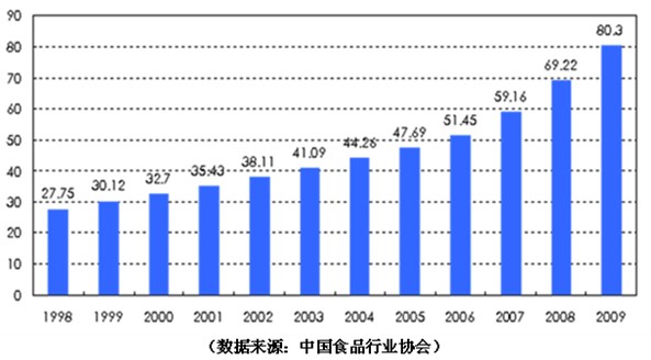 统计资料显示,2009年我国休闲食品制造业创造工业产值4364.5亿元,同比增长27.5%;销售收入达到4304.0亿元,同比增长31.4%;实现利润117.7亿元,同比增长52.9%。未来几年,我国休闲食品行业将迎来快速发展期。