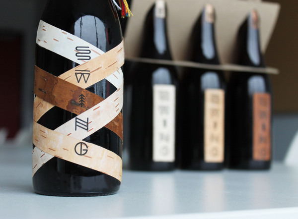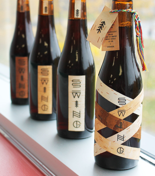 这款限量生产和摆动酿酒厂的开幕派对时专用。标签是由不同颜色的白桦纵横交错代表的文化魁北克今天的身份组成的交融条。该信息被打印然后贴用麻线编织用魁北克的箭头带的传统颜色组成的标签上。